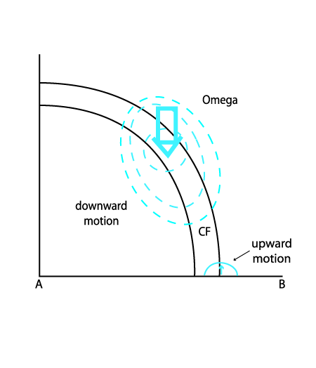 • There is a pronounced zone of divergence below and within the frontal surface and convergence above, which is in contrast to the classical CF.