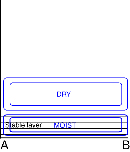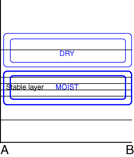 High (over 80%) cloud cover either very near or at the surface (both fog types ) or slightly lifted off the surface (advection St/Fog). - Isentropes: