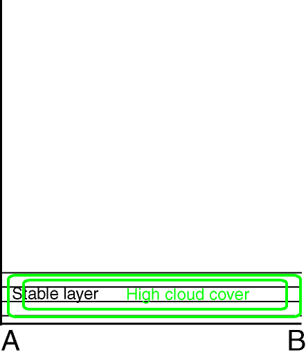 When moist and warm air is advected by the wind, turbulent mixing in the boundary layer moistens the air from below. This results in advection stratus clouds. When Stratus encounters cooler waters (with sea surface temperatures lower than air dewpoint temperature) or cold (possibly snow-covered) land, turbulence and thermal convection decrease significantly, but the water vapour-driven convection from the surface continues to mix the overlying air. This leads to cooling of the unsaturated air and lowering of the cloud base, eventually even to the formation of Advection Fog.
