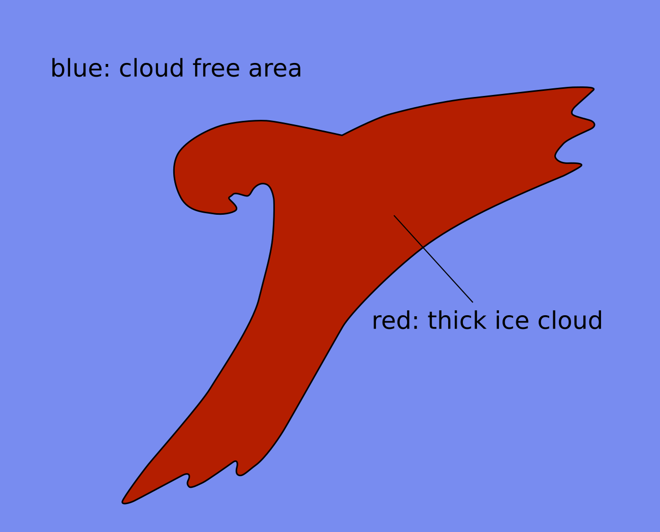 Usually the comma head - which becomes during the instant occlusion process the spiral of the instant occlusion - is dark red representing thick cloudiness. The comma tail which merges with the former cold front often is much lower showing up with different shades in ochre.