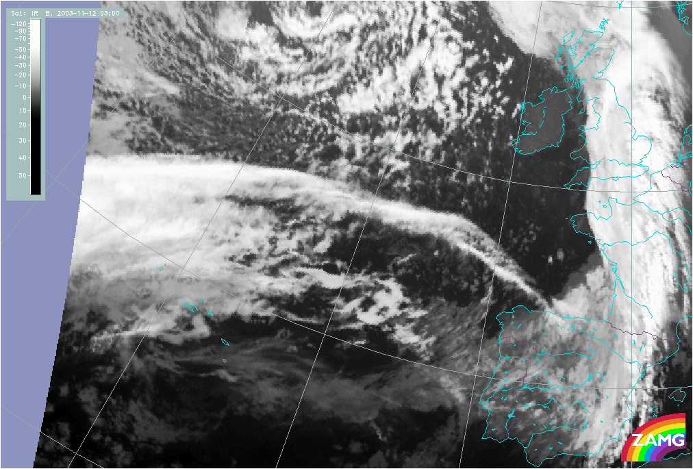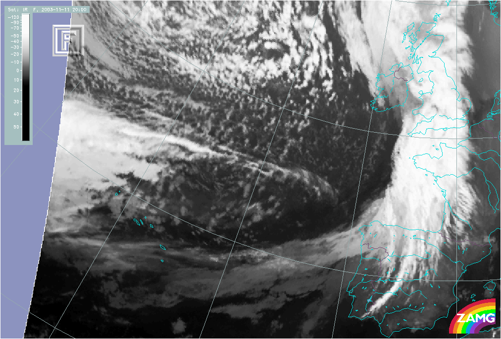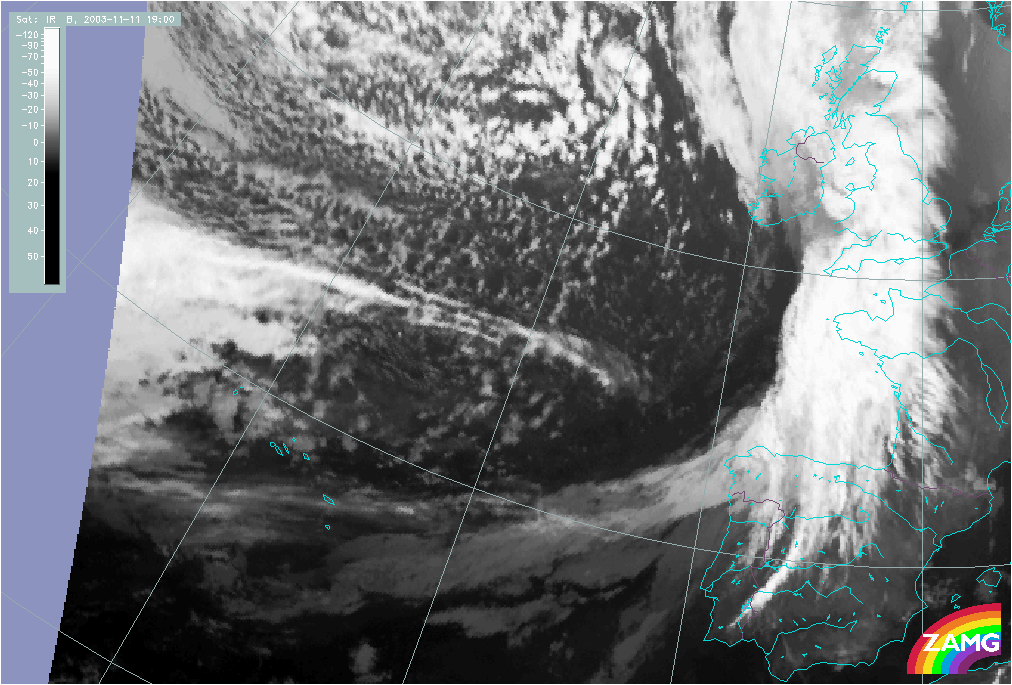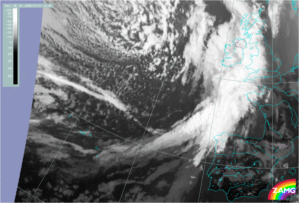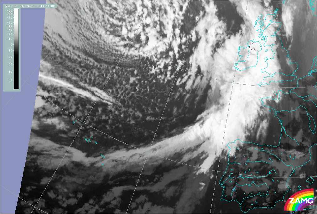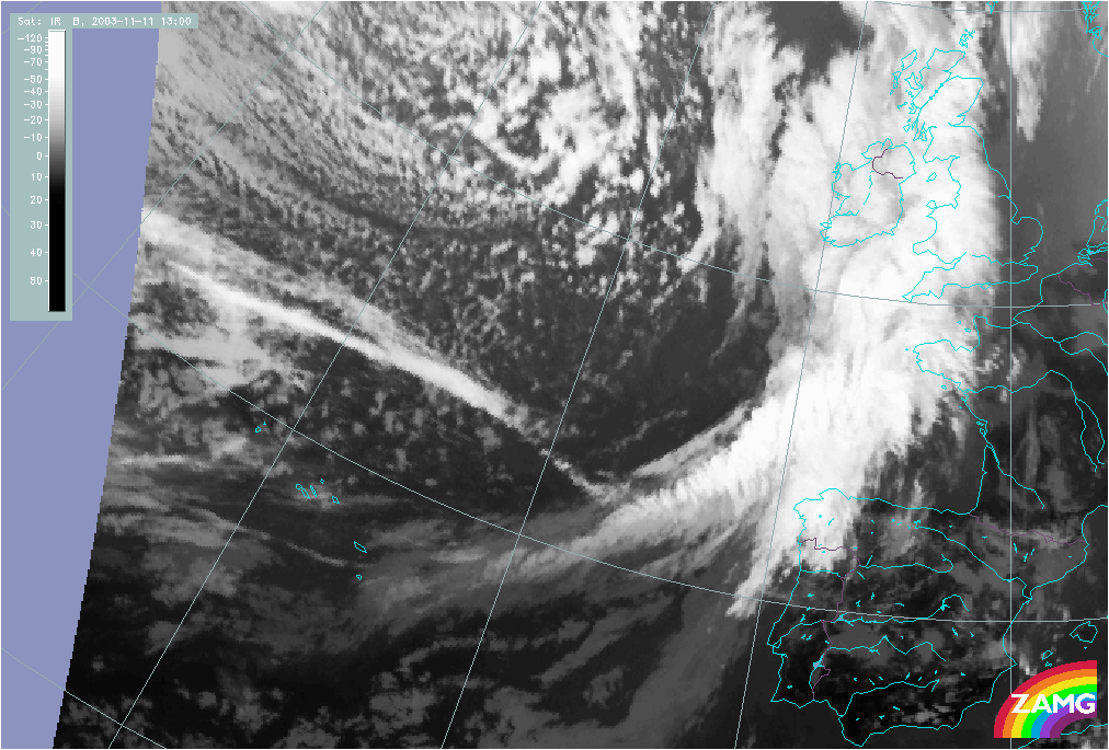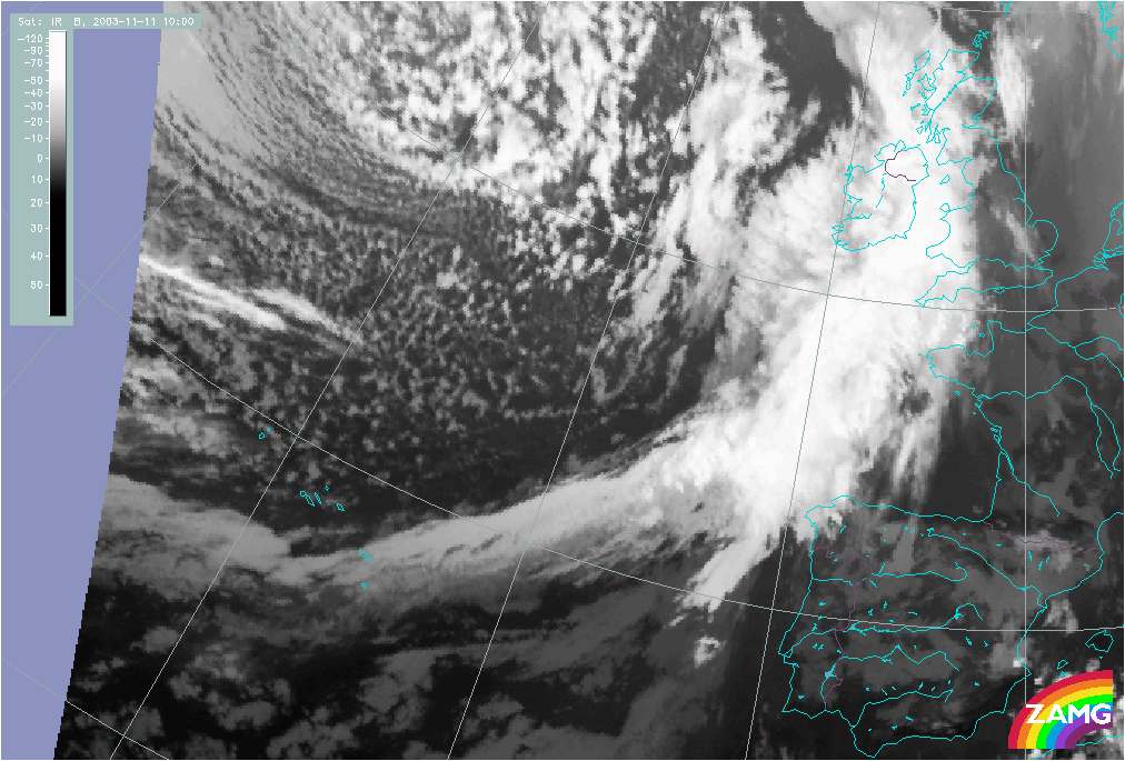 11 November 2003/10.00 UTC - Meteosat IR image; 11 November 10.00 UTC - 12 November 06.00 UTC hourly image loop