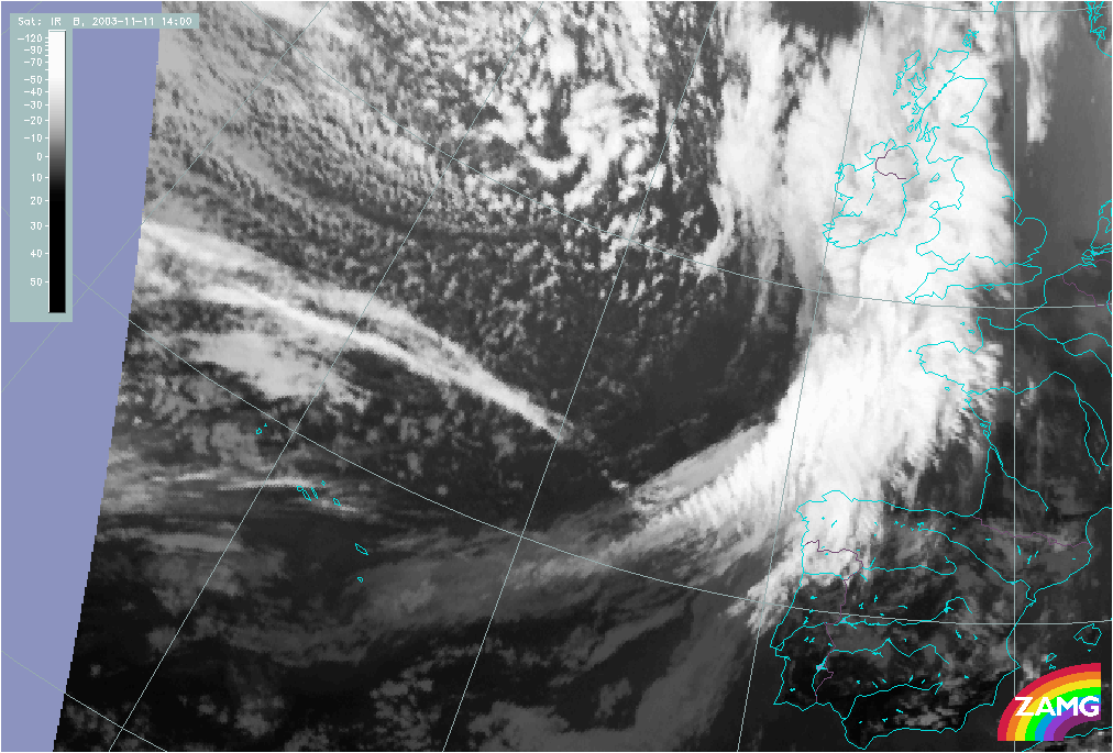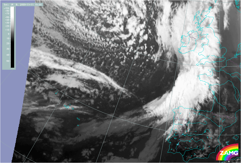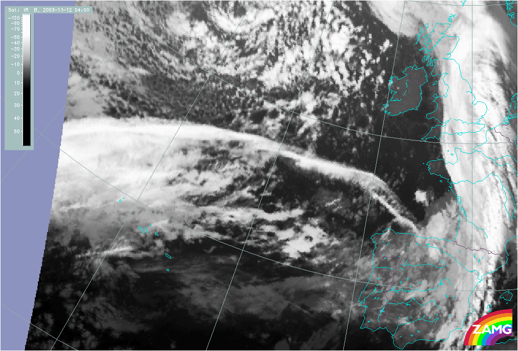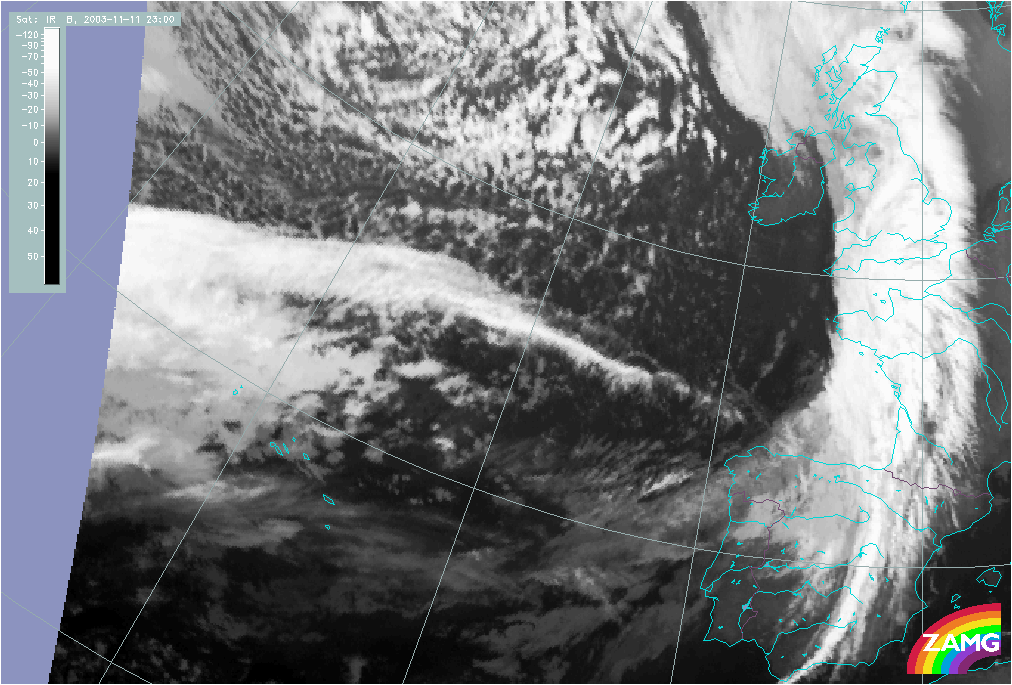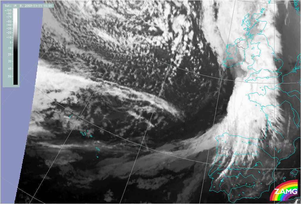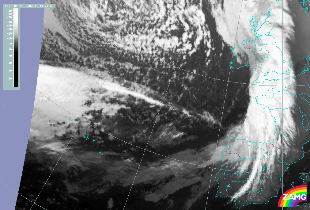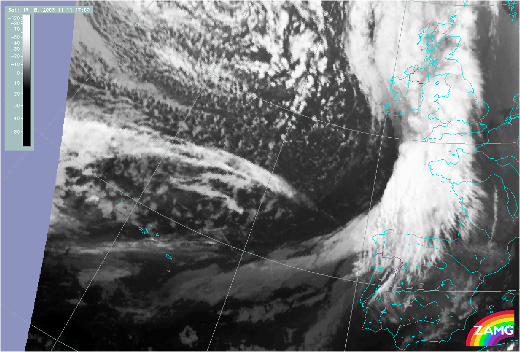11 November 2003/10.00 UTC - Meteosat IR image; 11 November 10.00 UTC - 12 November 06.00 UTC hourly image loop