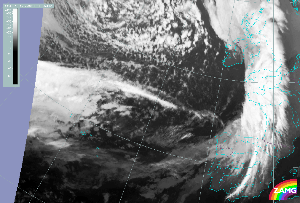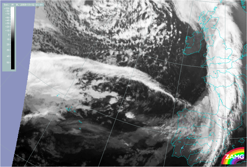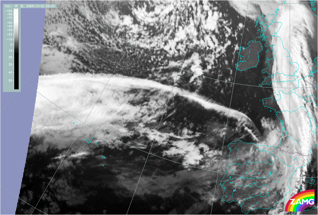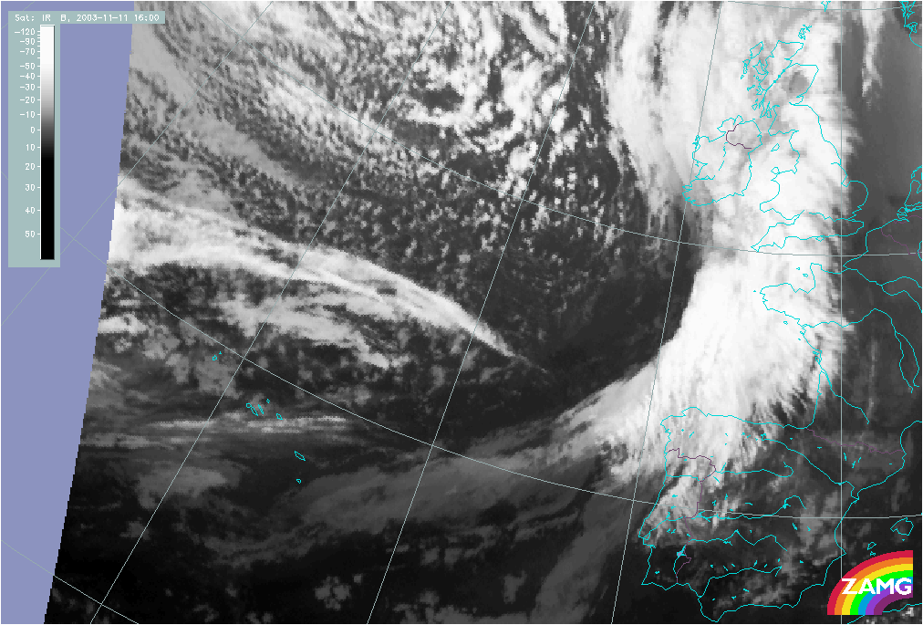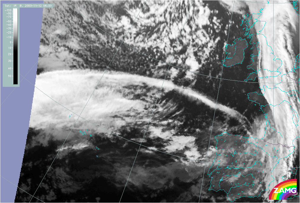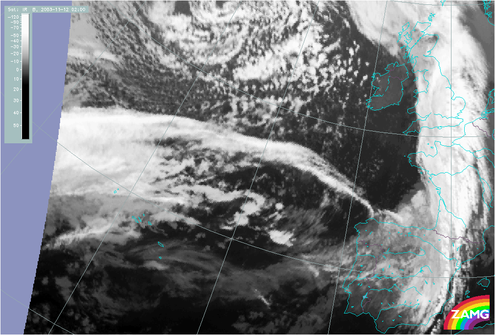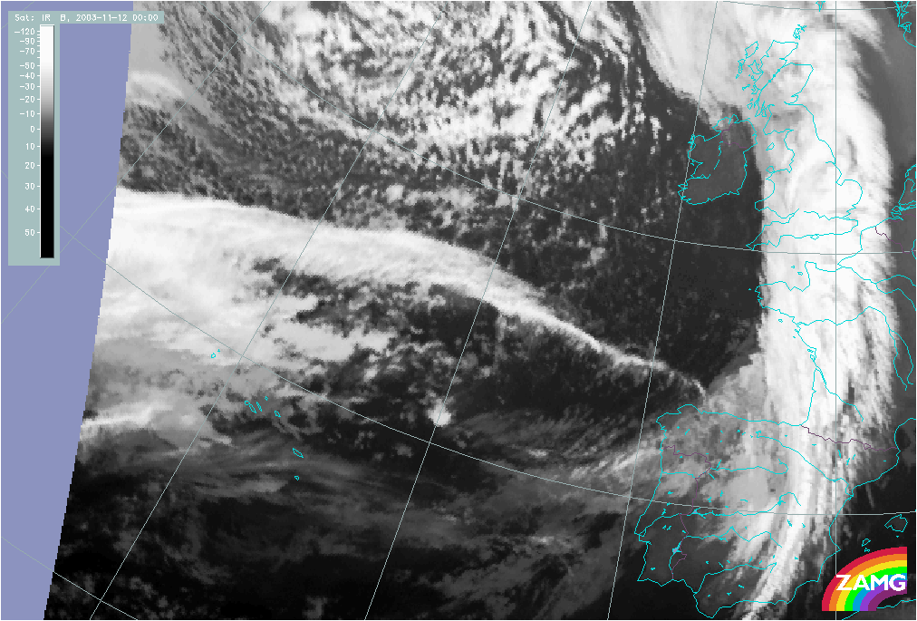 11 November 2003/10.00 UTC - Meteosat IR image; 11 November 10.00 UTC - 12 November 06.00 UTC hourly image loop