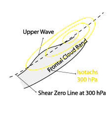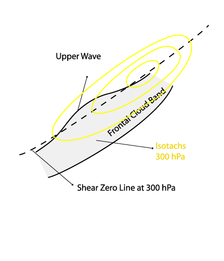 - Isolines of Curvature Vorticity cross the cloud band at the Wave point at an acute or nearly right angle