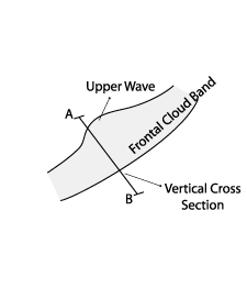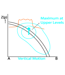 Vertical motion indicates rising air, with the maximum at upper levels, due to a rising upper relative stream