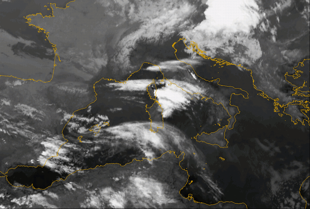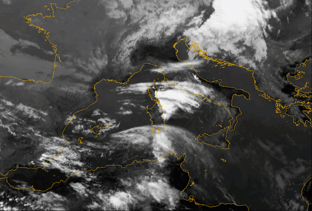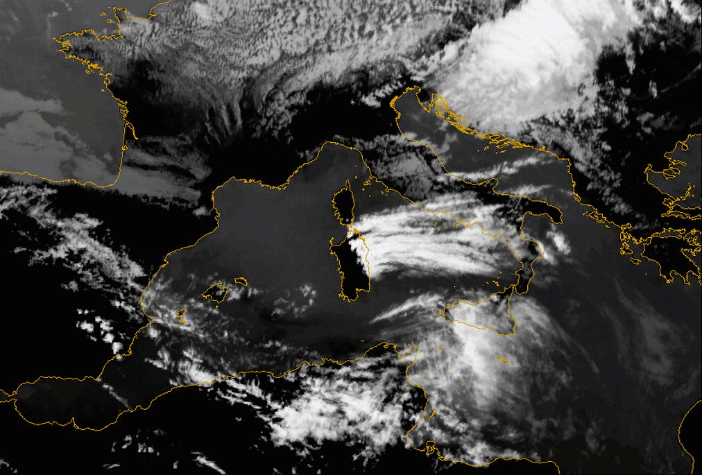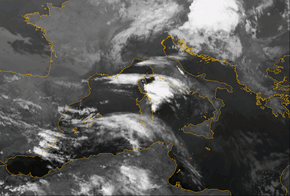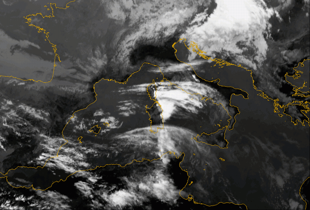 The image shows well developed Lee Waves over Corsica, formed by the mountains in the northern part. To the west even Lee Waves that developed over the Pyrenees are observed.