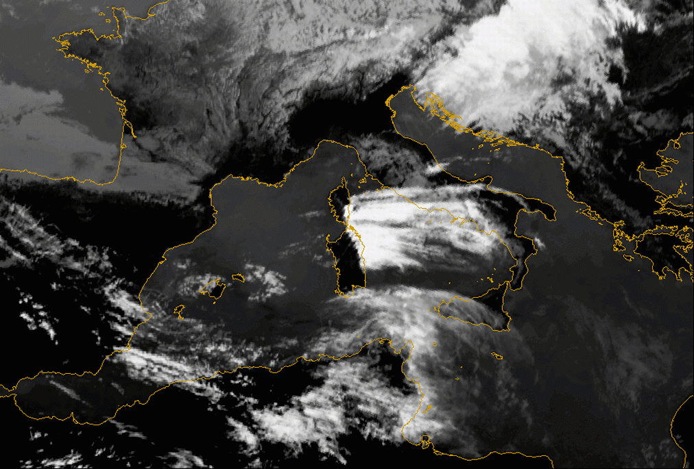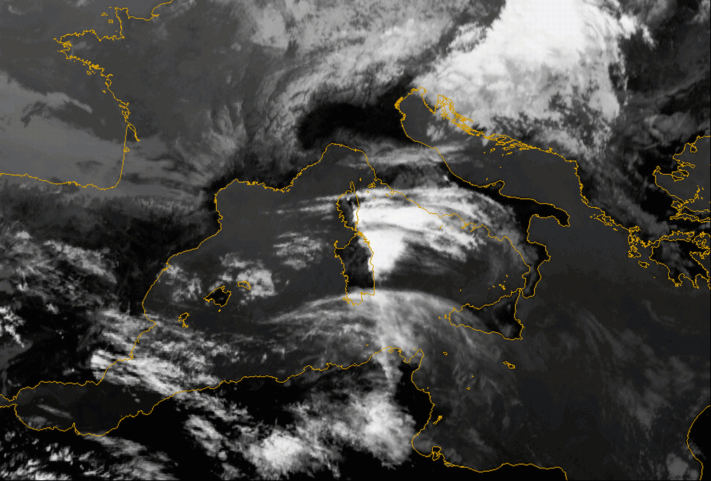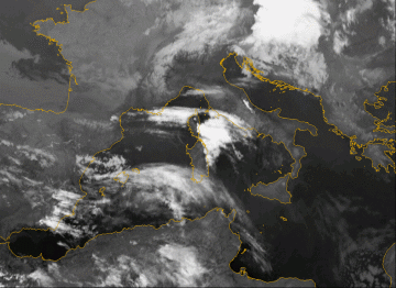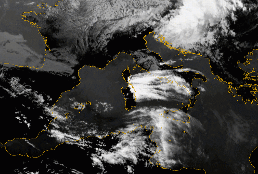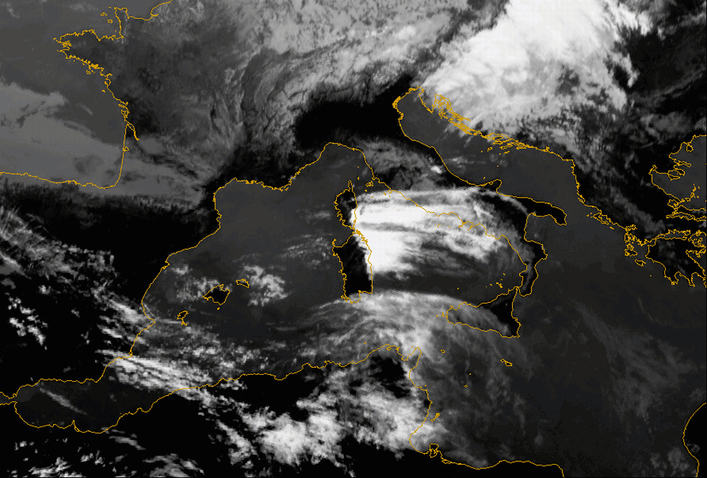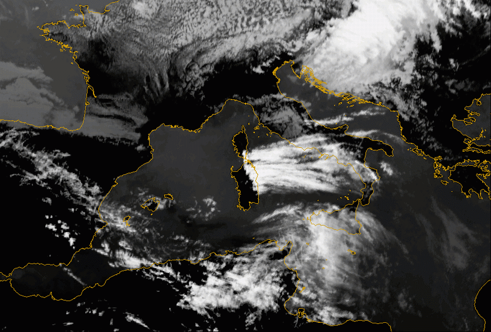 The image shows well developed Lee Waves over Corsica, formed by the mountains in the northern part. To the west even Lee Waves that developed over the Pyrenees are observed.