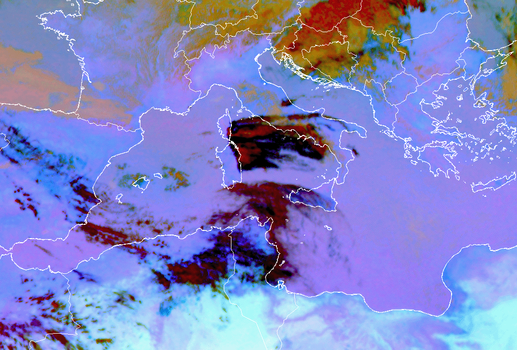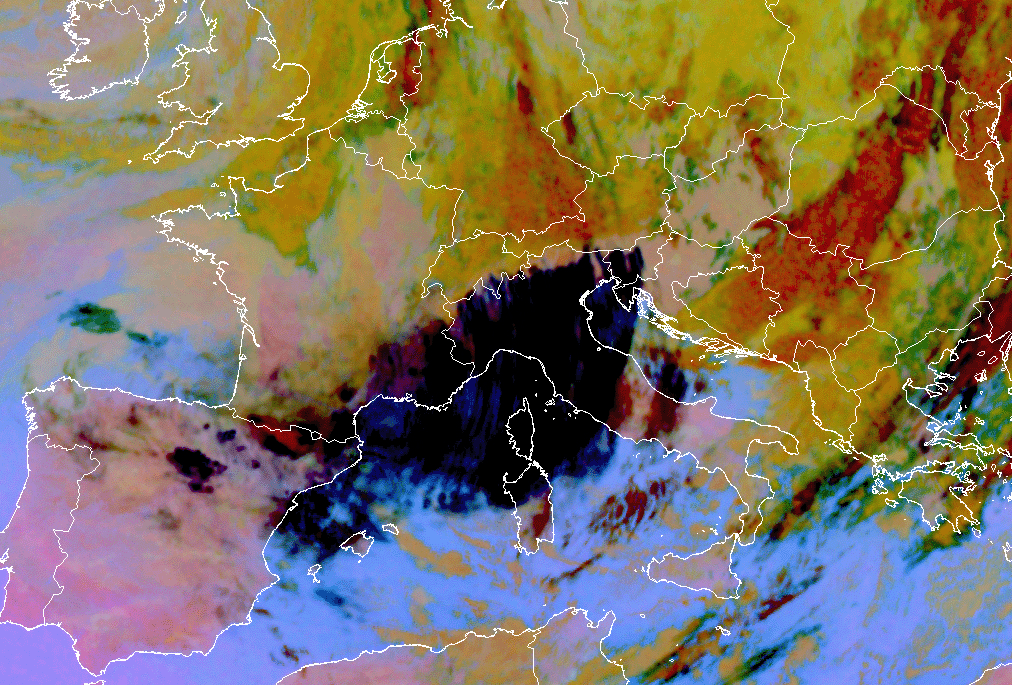 08 May 2005/09.00 UTC - Meteosat 8 Dust RGB image