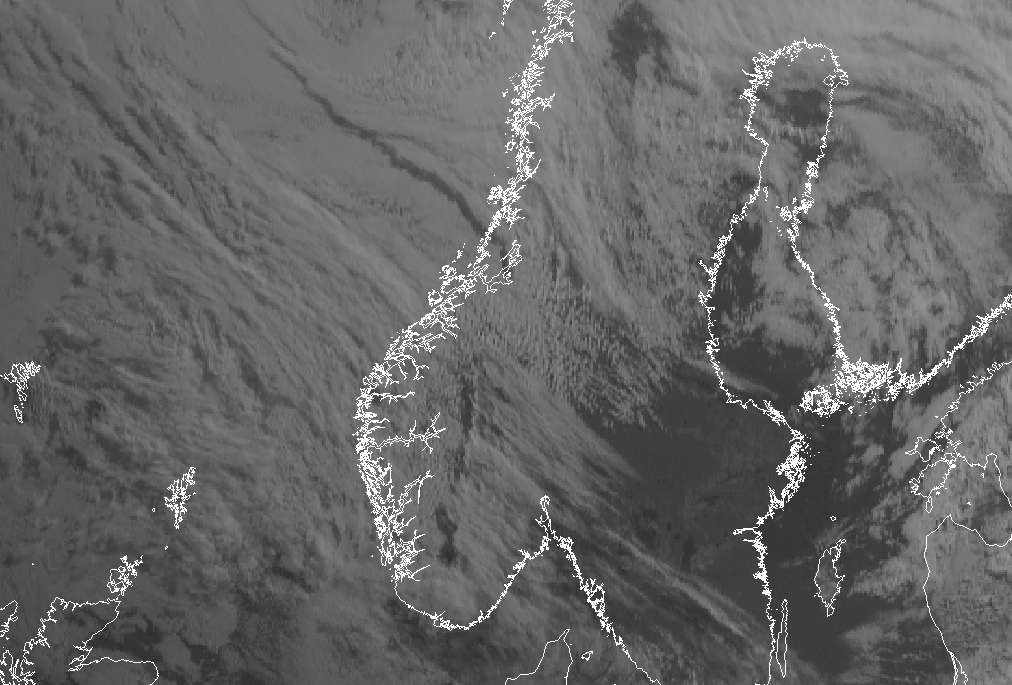 The two images above show Lee Cloudiness over the Norwegian Mountains. Lee Waves are situated immediately behind this mountain chain whereas high Lee cloudiness is found extending far to the east over Southern Norway and Southern Sweden.