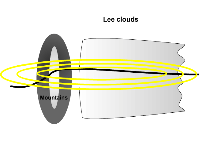 Lee Cloudiness is one result of orographically influenced air flow on the lee side of a mountain. Depending on the atmospheric conditions two types of cloudiness can be observed: