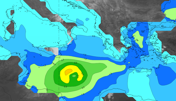 | Wave height | significant wave height under influence of Medicane - in some cases maximum heights even up to 6 m |