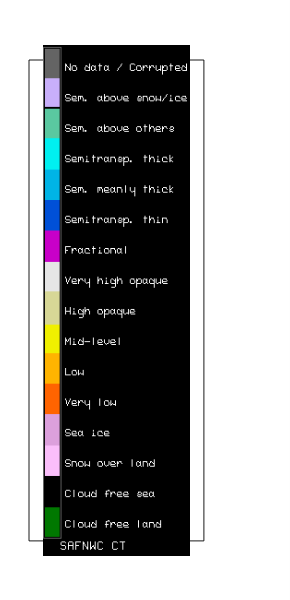 Figure 11: 17 September 12 UTC - NWC SAF products Cloud Type (legend) and Cloud Top Height (legend). Move the slider to compare the images.