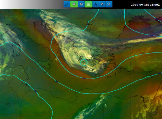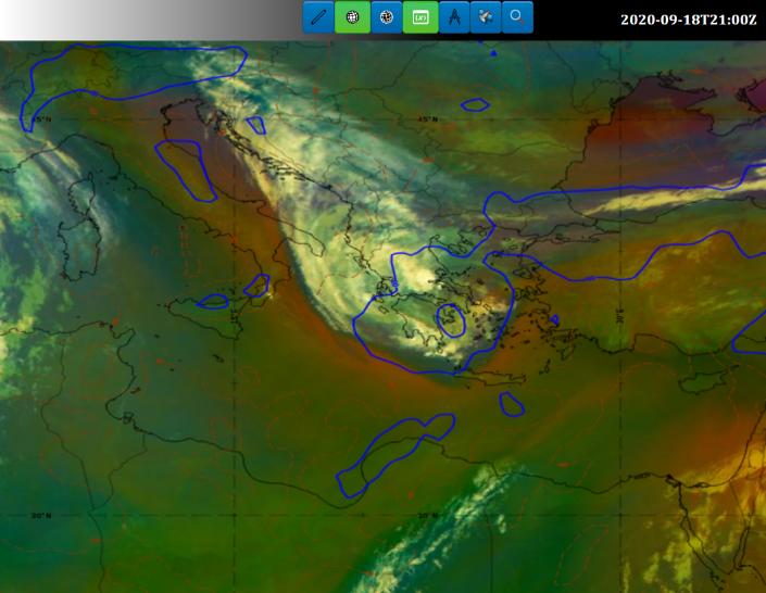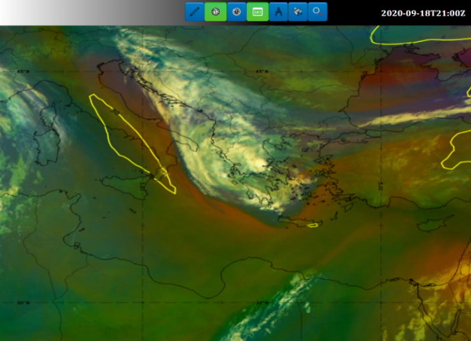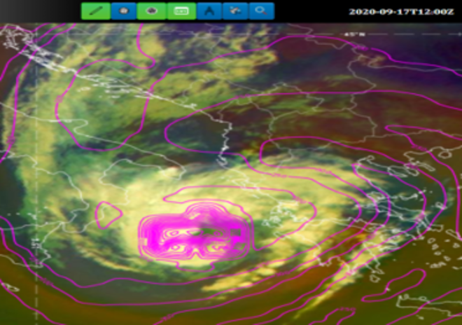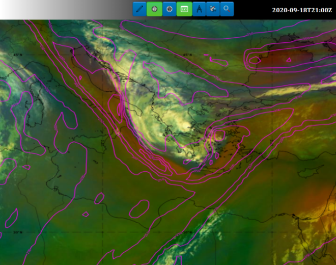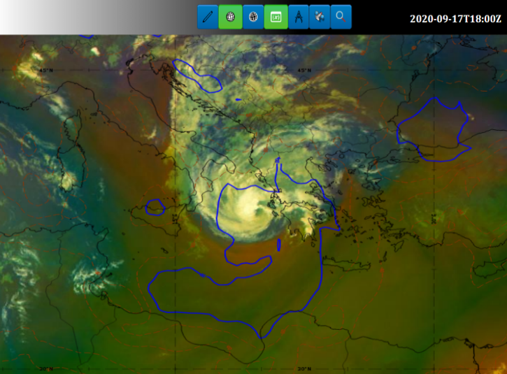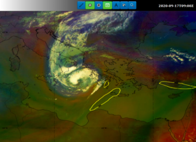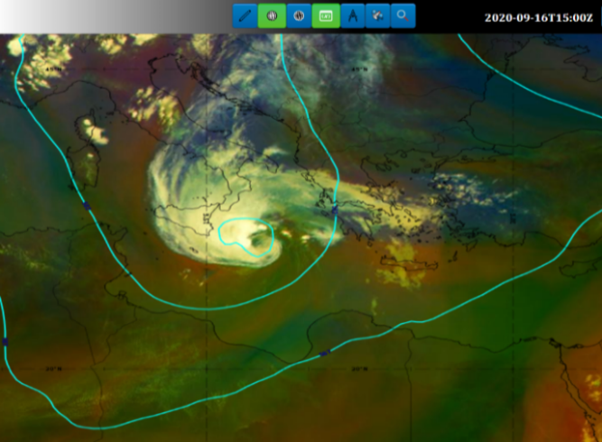 Figure 1: Airmass RGB, 17.9.2020. 15 UTC (Medicane Ianos).