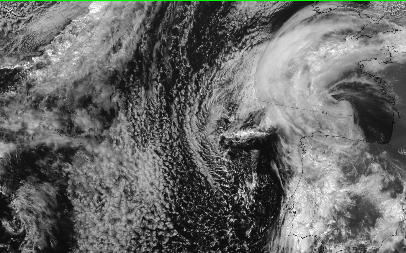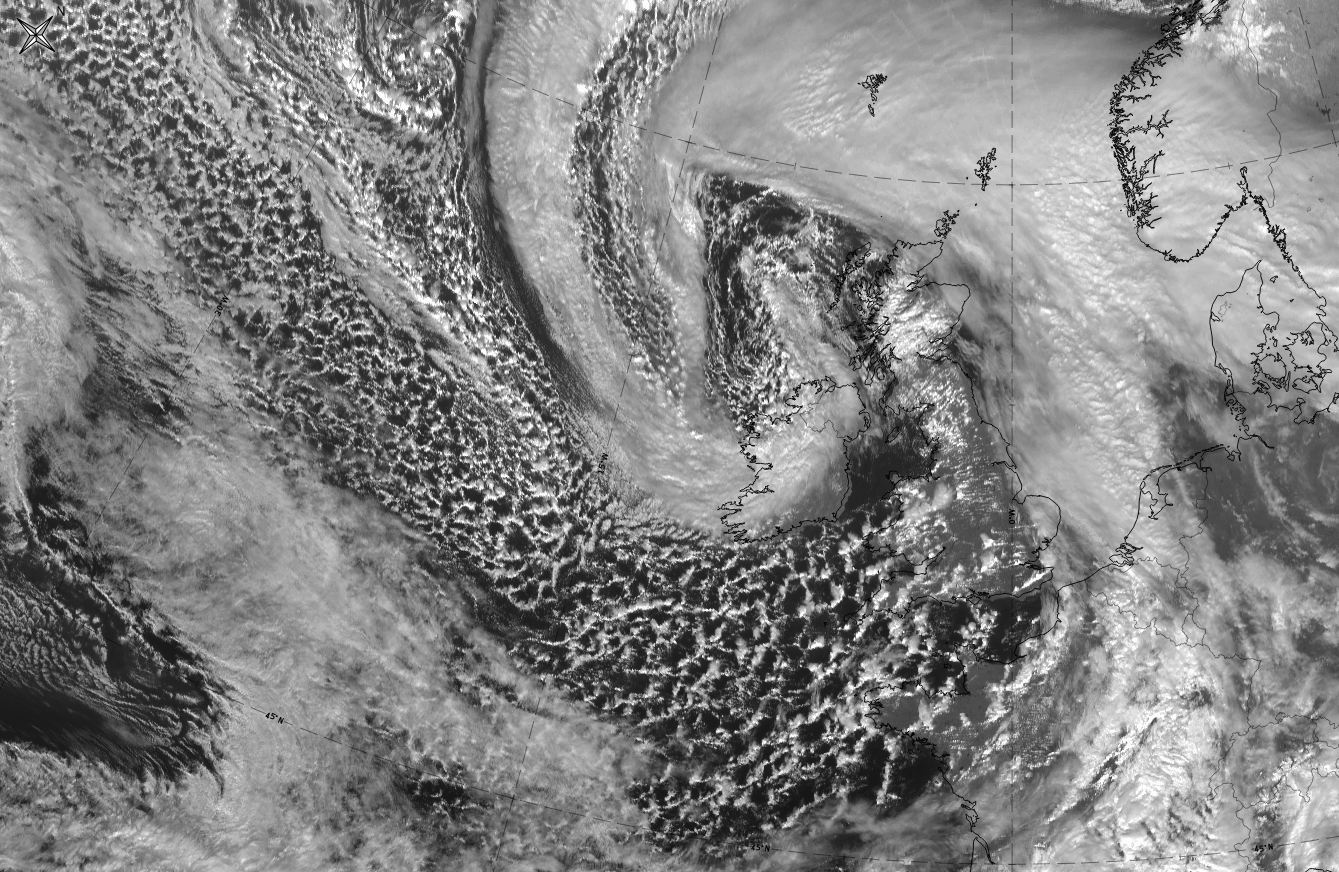 On 29 February 2020 at 12 UTC a large area of regularly arranged open cells extends from the NW Atlantic to Brittany, France and to SW England where the cells become larger.