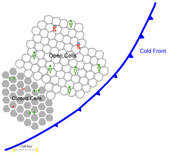 For demonstrating the weather situation two examples are shown: one for open cellular convection and one for closed cellular convection.