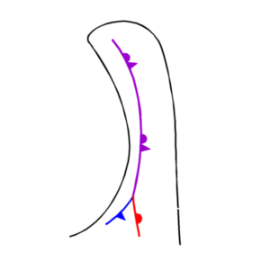 The configuration of the warm conveyor belt depends on the stage of development. In the early wave stage the warm conveyor belt ascends within the cloud band of the Cold and Warm Front where it turns anticyclonically parallel to the surface warm front (see Warm Front Band). During this type of Occlusion development, the warm conveyor belt develops to a ridge-like hook over the occlusion band and later on splits into two parts: the eastern branch follows the cloud band of the Warm Front while on the western branch follows the cloud spiral of the Occlusion. This is one main difference to the Cold Conveyor Belt Type Occlusion.