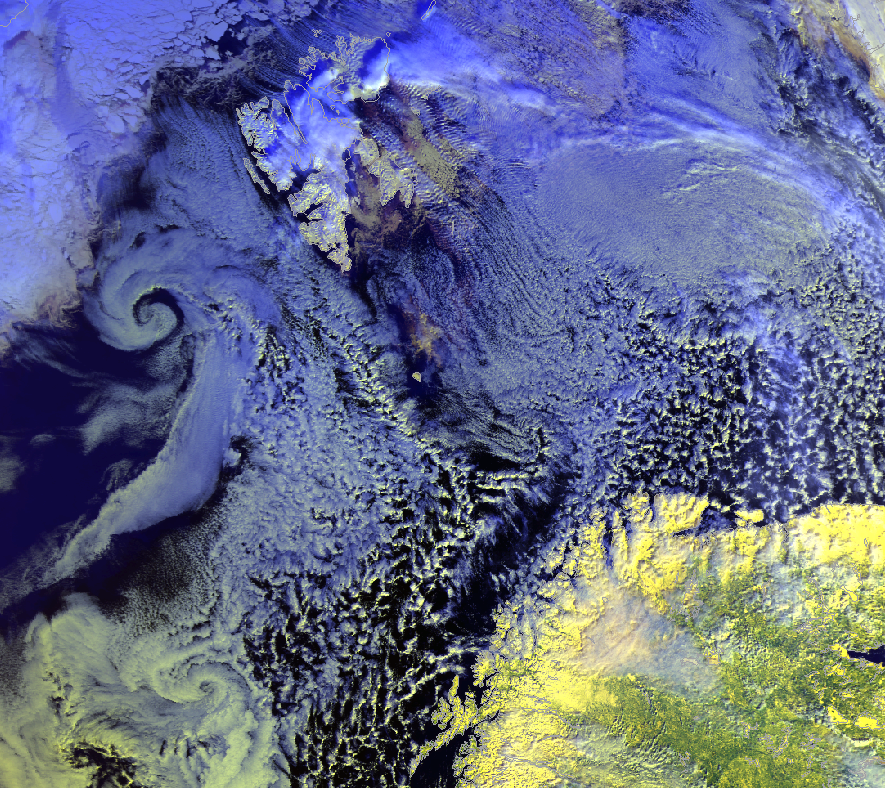 Figure 1.8: A meso circulation southwest of Spitsbergen on the 31st March 2014. Illustration: MET/NOAA