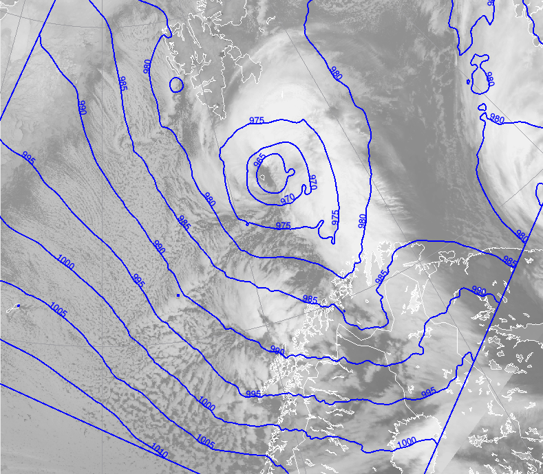 4. There needs to be an area of enhanced baroclinicity at low to middle levels that can, under influence of the upper trough and together with static instability, intensify into a Polar Low. The baroclinic zone can have different origins. Most commonly it is: 1) a remnant of an old occlusion, 2) a convergence zone, e.g. the one that often forms south of the tip of Spitsbergen in a northerly flow, or 3) at the fringes of a cold air outbreak, between the cold air in the north and warmer air to the south.
