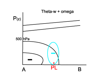 This PV maximum is situated at mid levels of the troposphere but has transferred down from the stratosphere. A PV maximum can also be found in the gradient zone of the very stable layer near the surface over or near icefields.