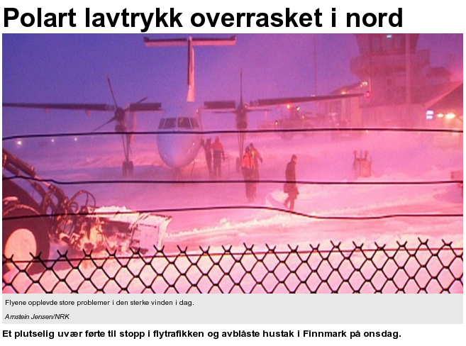 Figure 5.3: Cancelled flight due to a polar low in Hammerfest. Business no longer as usual... Photo: Arnstein Jensen/NRK