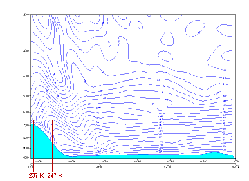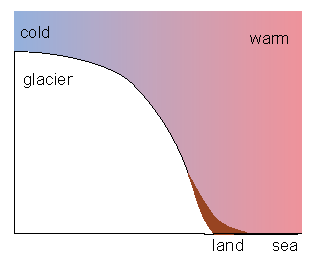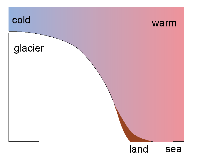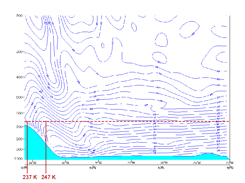 Greenland's glacier rises up to 3000 m. In cloud-free conditions the air near its surface is cold, between -30 and -20 °C even in summer. The air above it is often warmer, so a temperature inversion is usually present. In contrast, the sea-temperature is around 0 °C, and there is no inversion above it. The sea between Greenland and Iceland is open throughout the year, which favours Piteraqs to arise.