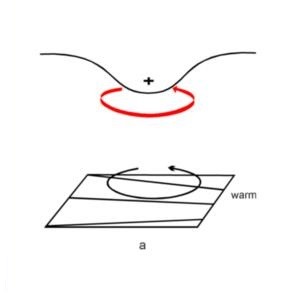 This is the focal point of Hoskins Theory in which the increased vorticity above and the thermal wave in lower layers form a tube in which a mutual increase of rotation takes place.