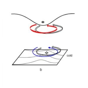 Early in the developmental history of cyclogenesis theory, a low tropopause height was found to occur at the CF and in the area of the cyclogenesis development, with a high tropopause occurring along the warm front and within the warm sector.