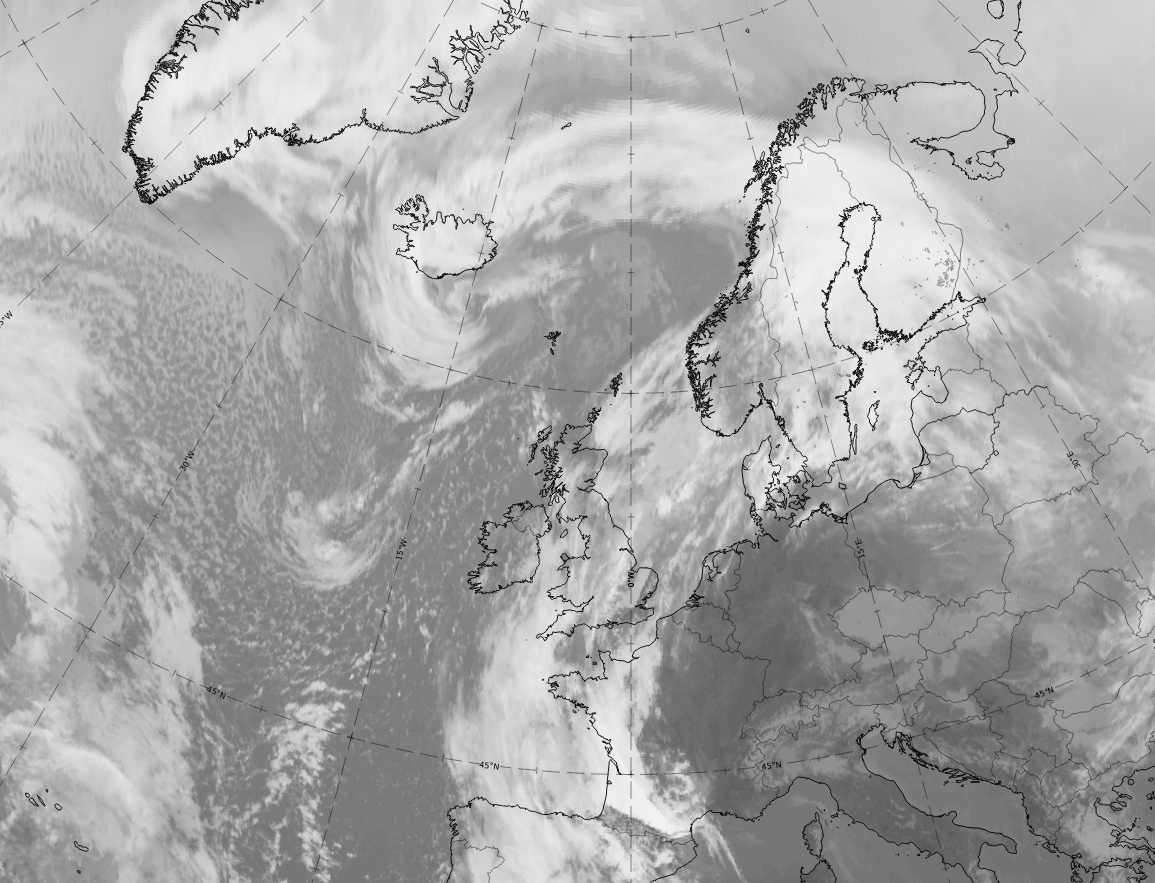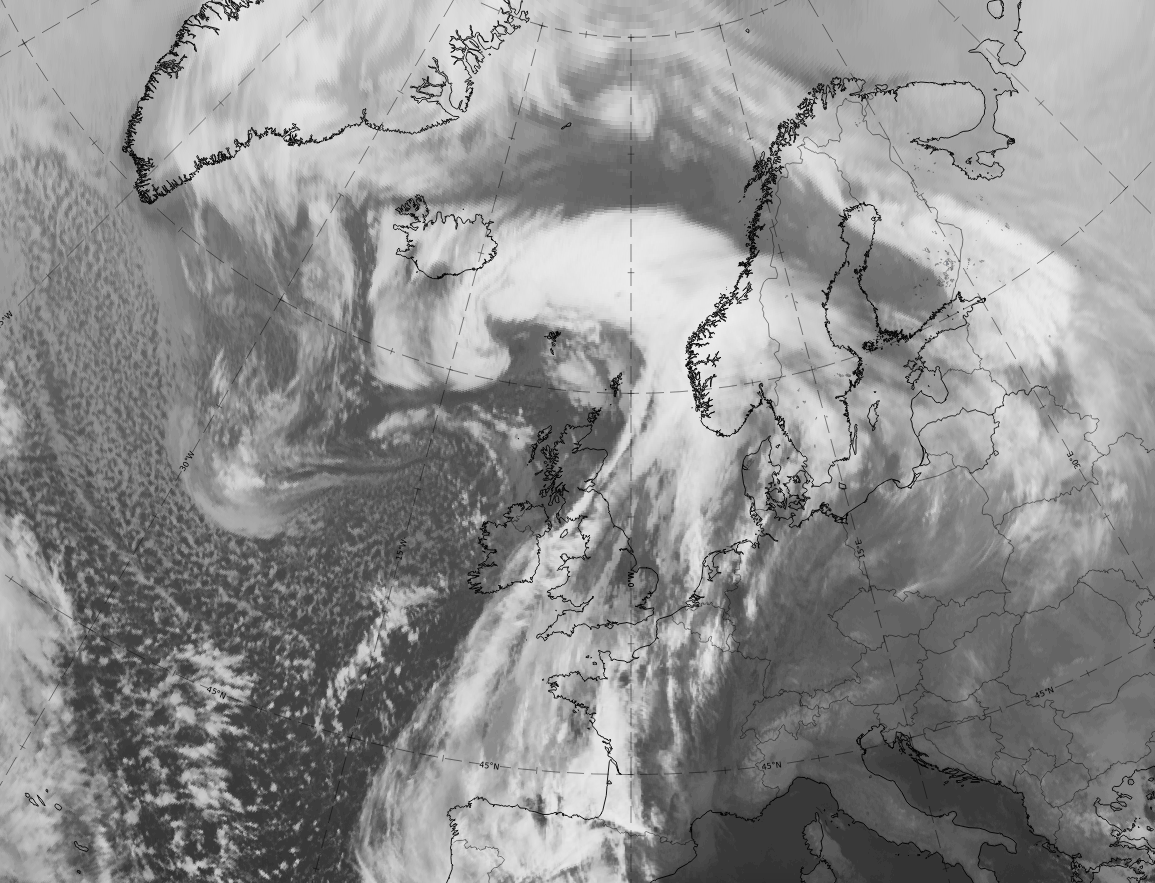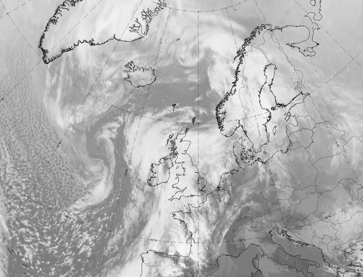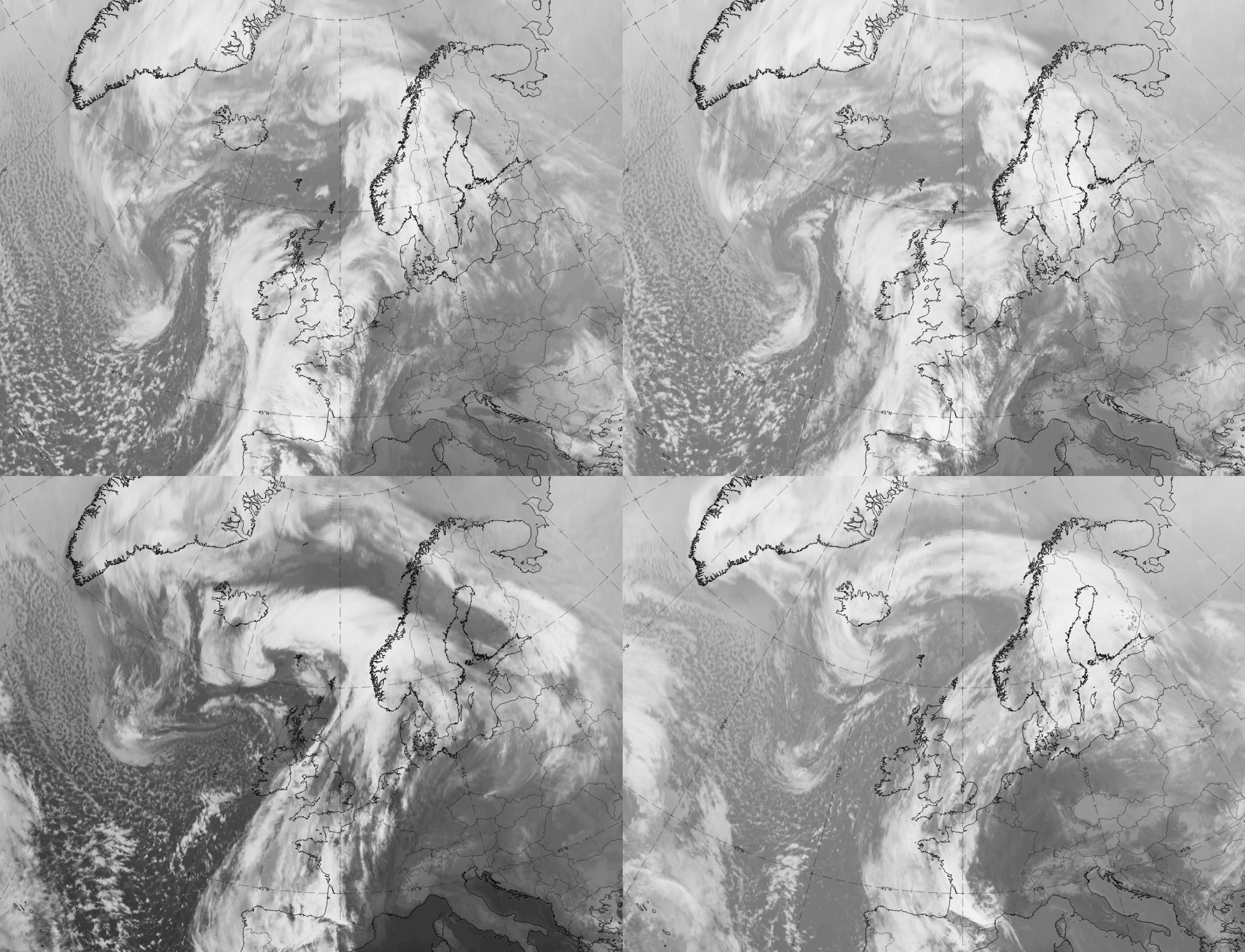 This case shows, in its first phase of the development, a feature not seen in every case and therefore not a typical cyclogenesis feature: a merging of two frontal systems. One is a broad cloud band extending from Spain across the British Isles into the North Sea and the other is a little further west over the Atlantic. The wave develops on the western system and its cloud configuration is fully developed at 09:09 UTC on 20 February 2021, when the mixing process between the two systems is nearly complete.