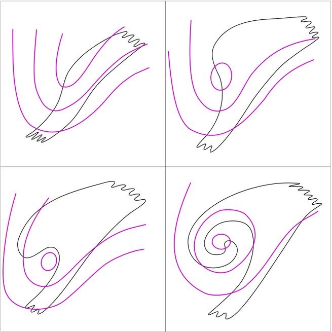 • During the stages with occlusion spirals, thickness lines form a ridge within the cloud spiral, indicating the lifted warn air; this is a typical cyclogenesis process according to the Polar Front Theory.