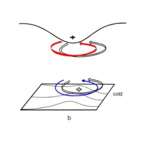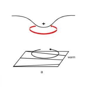 | Fig. 17a: Positive PV anomaly. | Fig. 17b: Positive PV anomaly causing positive temperature advection. |