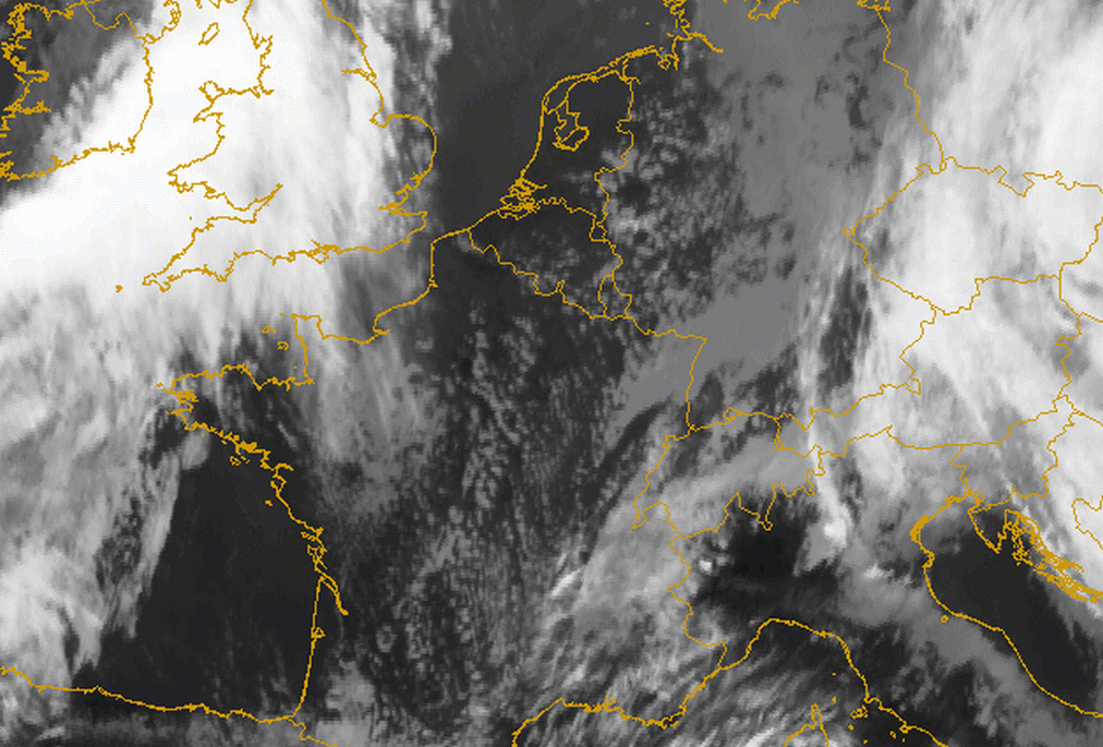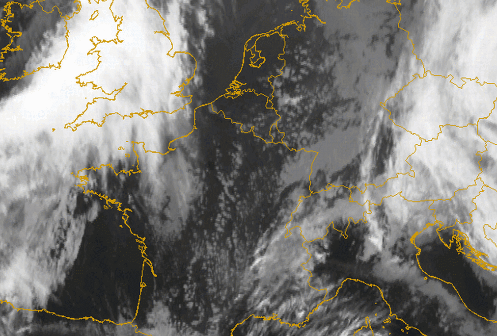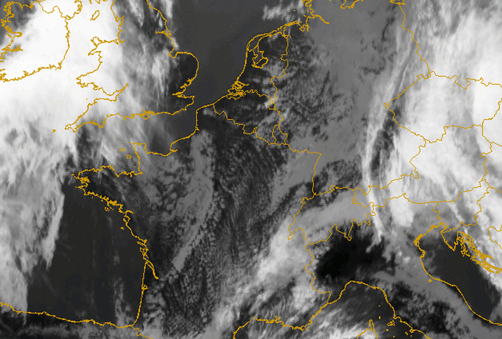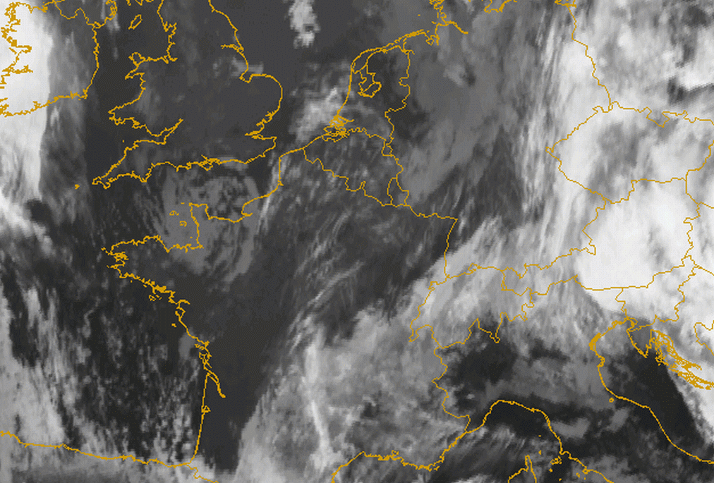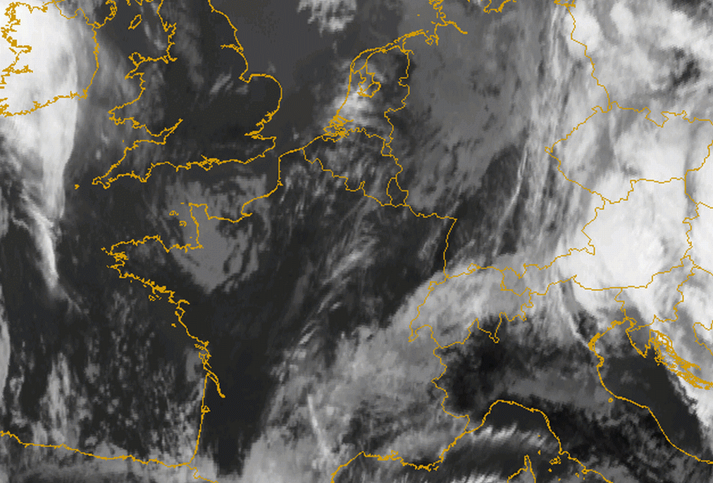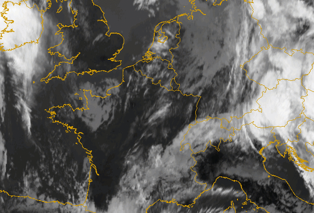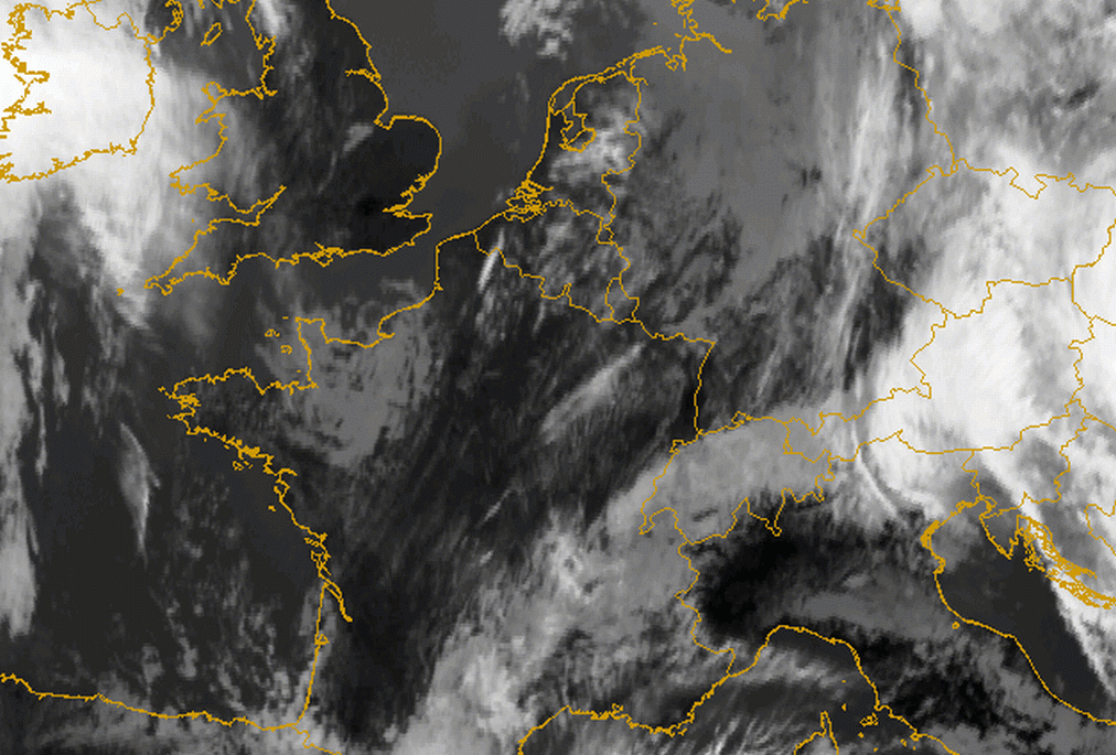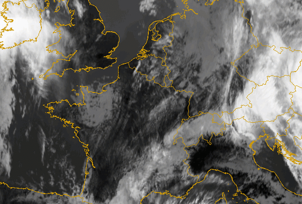 The Airmass RGB gives a very good overview of high-level thick clouds but is not well suited to low-level barrage cloud. It is also unable to discriminate between clouds and cloud-free land.