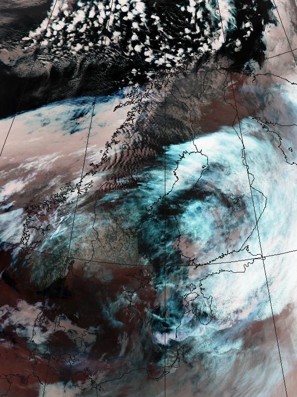 10 November 2002/19.00 UTC - NOAA image; Barrage Cloudiness is pronounced in Northern Sweden and Finland. Some barrage clouds seen even in middle parts of Scandinavian mountains