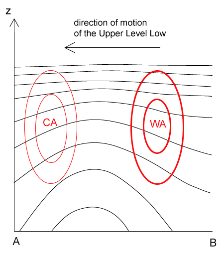 The prerequisite of the forming of the Upper Level Low are unstable waves within the main stream, where the temperature wave is behind the geopotential wave.
