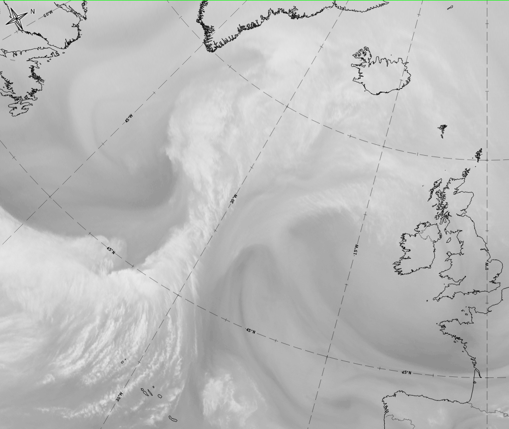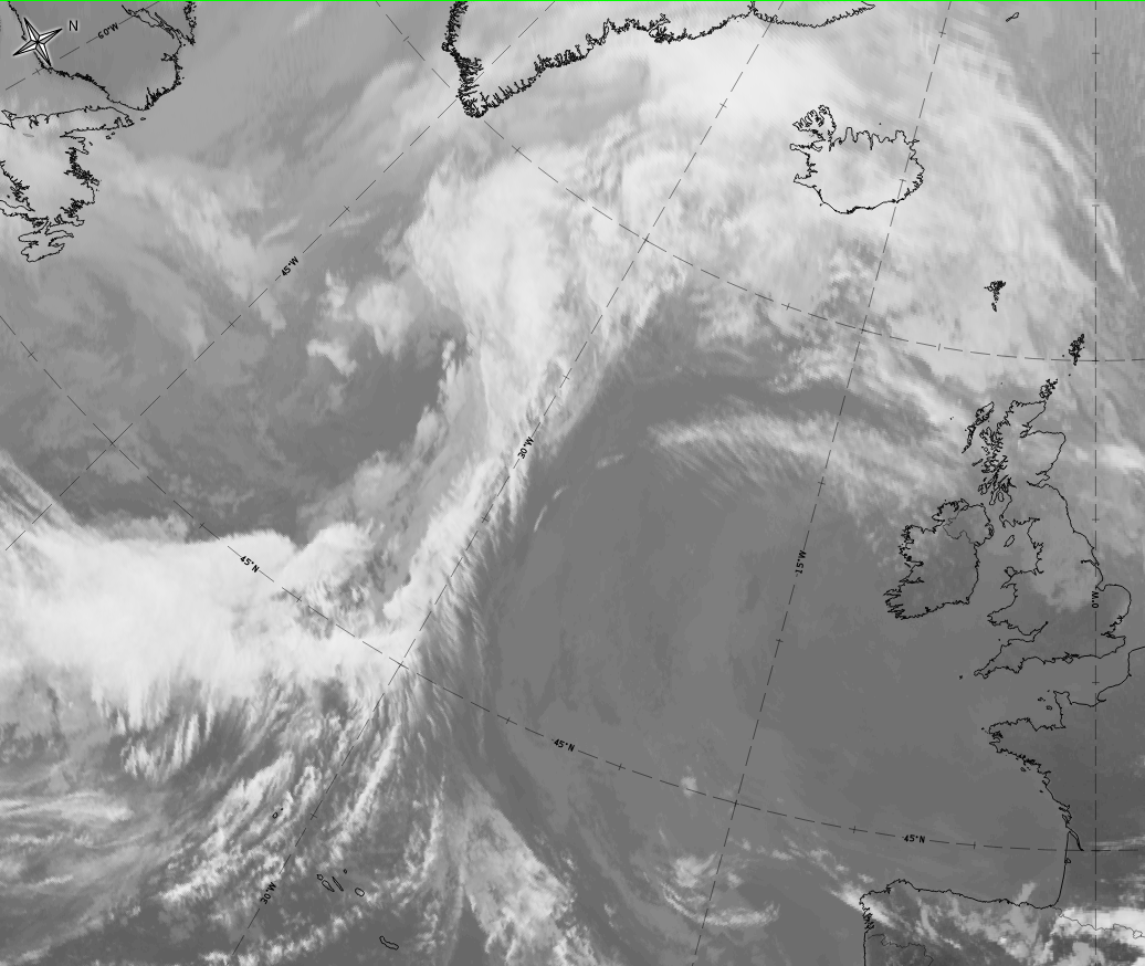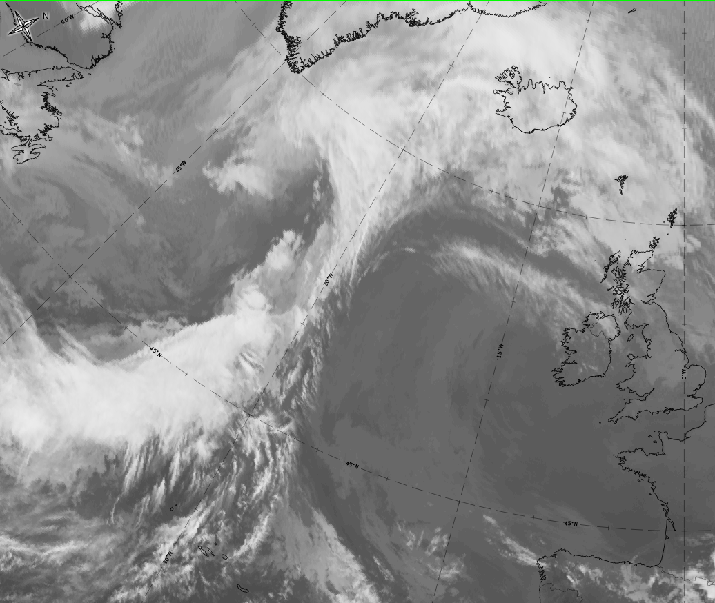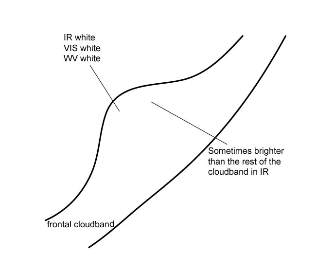 - In the IR image the grey shades can be brighter than the rest of the cloud band;