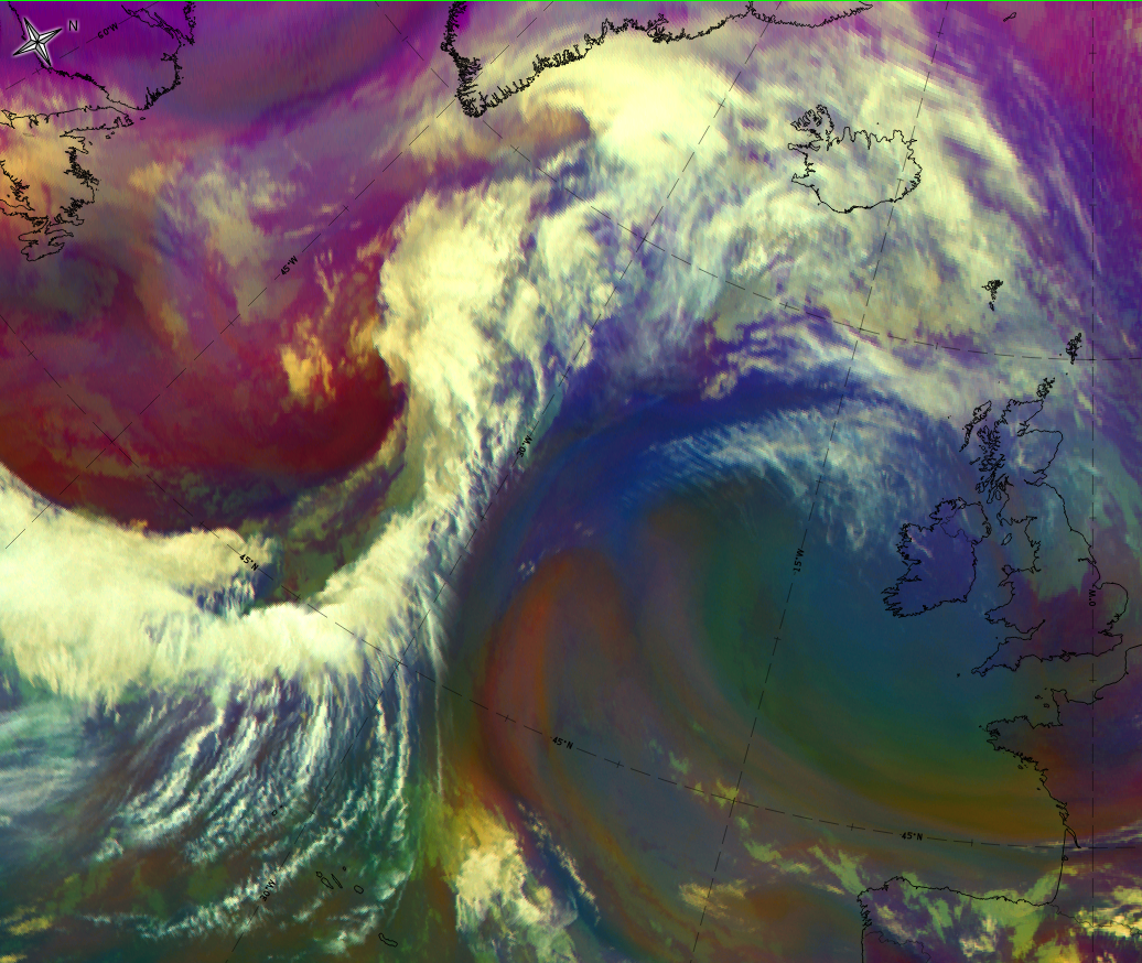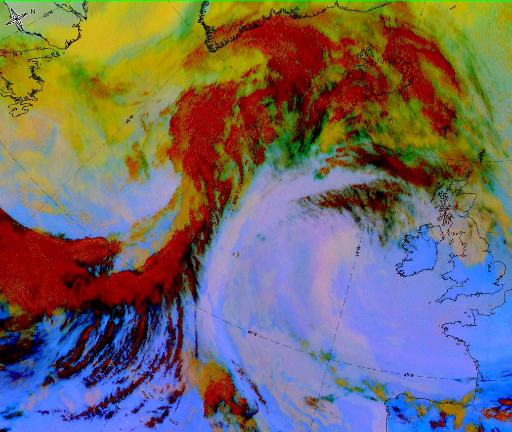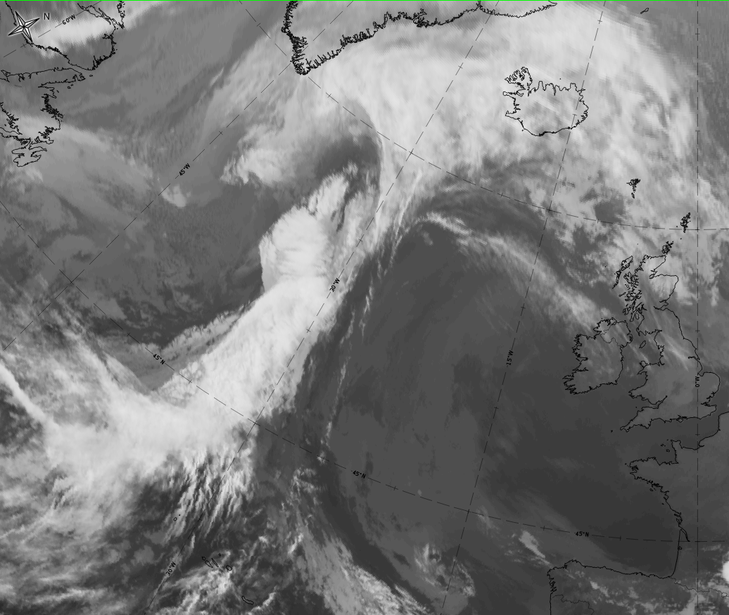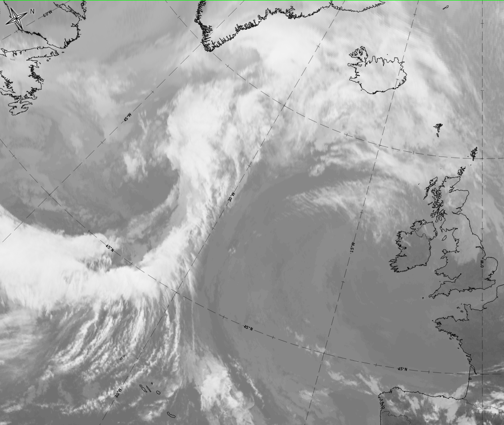 - In the IR image the grey shades can be brighter than the rest of the cloud band;
