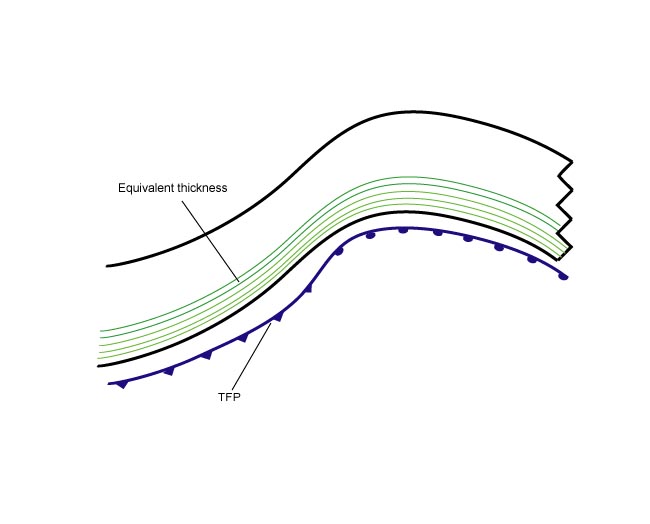The cloud band of the Warm Front Band is within the higher gradient zone of equivalent thickness. - Thermal front parameter (TFP):