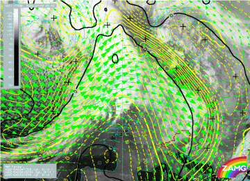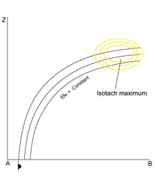The two isentropic surfaces used for the relative streams in the figures below are 296K, which is within the main high gradient zone, and 308K which is relevant for upper levels.