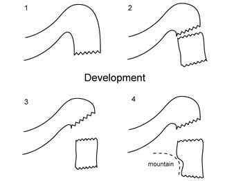 if the Detached Warm Front moves against mountains (for instance the Alps in central Europe), enhanced cloud amounts can be seen on the windward side (see Barrage Cloud ), as well as high Lee Cloudiness on the lee side (see Lee Cloudiness ). - Some features of the life cycle can be observed: