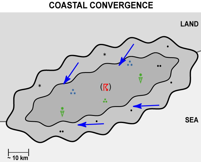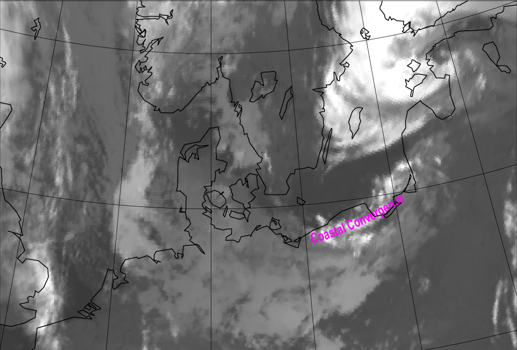 The example shows a Meteosat IR image of coastal convergence clouds along the Polish-Kaliningrad-Lithuanian coast.