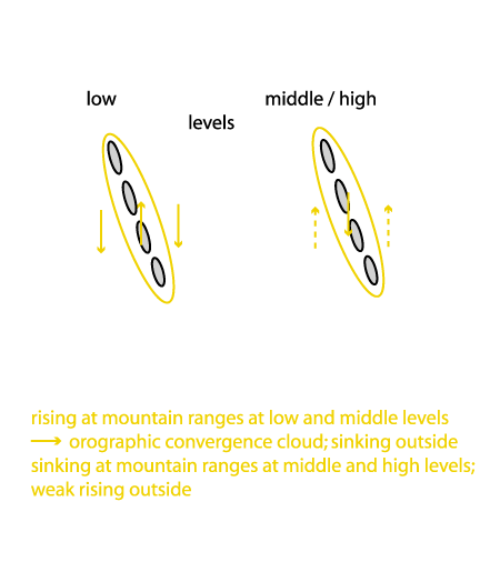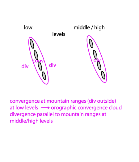 The orographic Convergence Line is extending from the SE Peloponnese across N. Greece northward to Macedonia.
