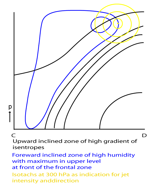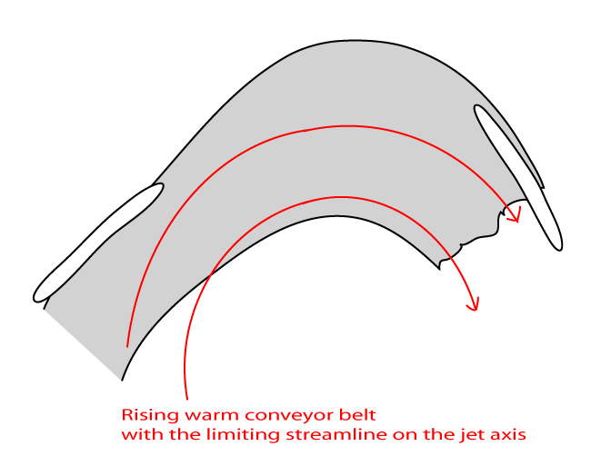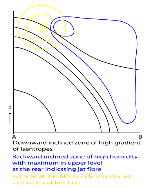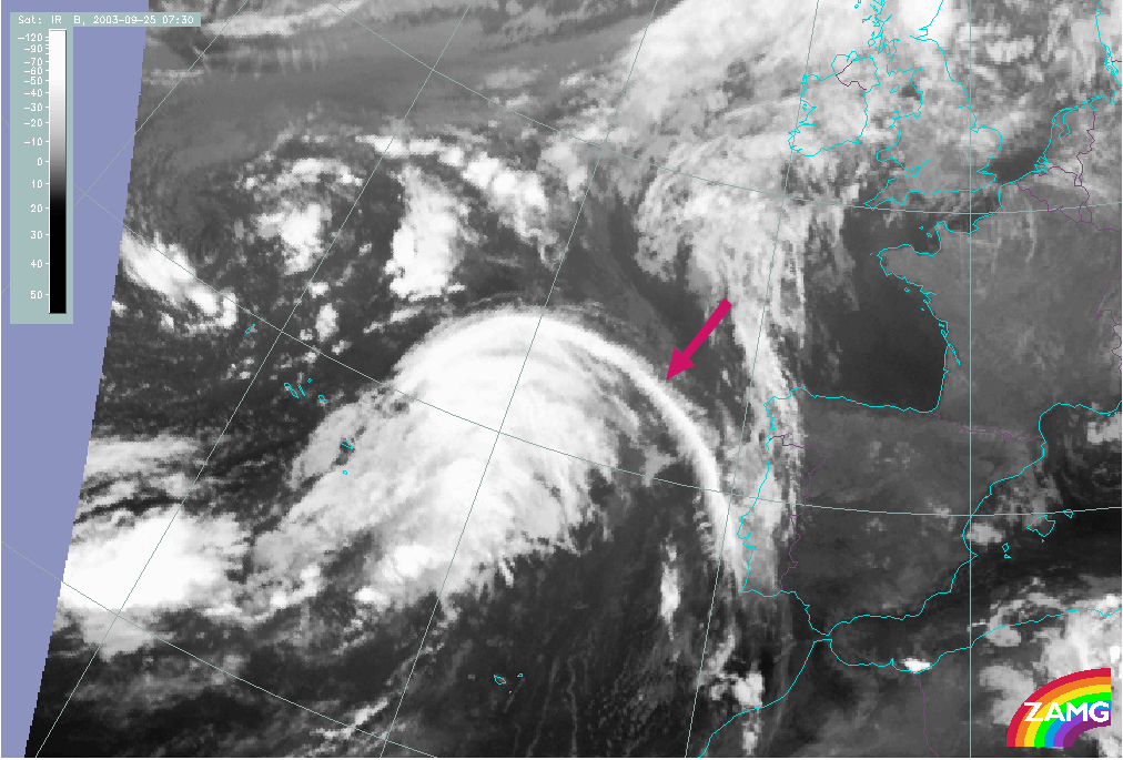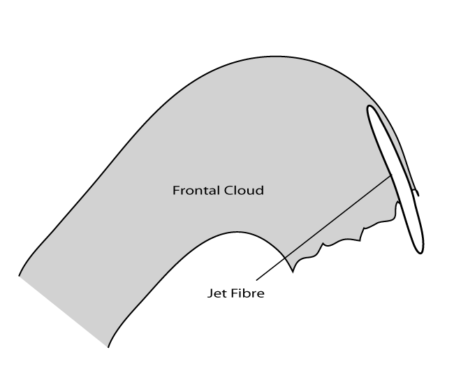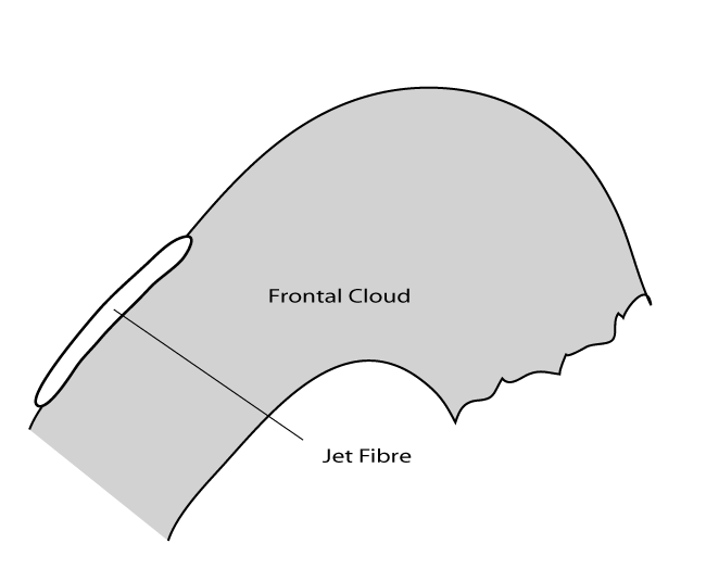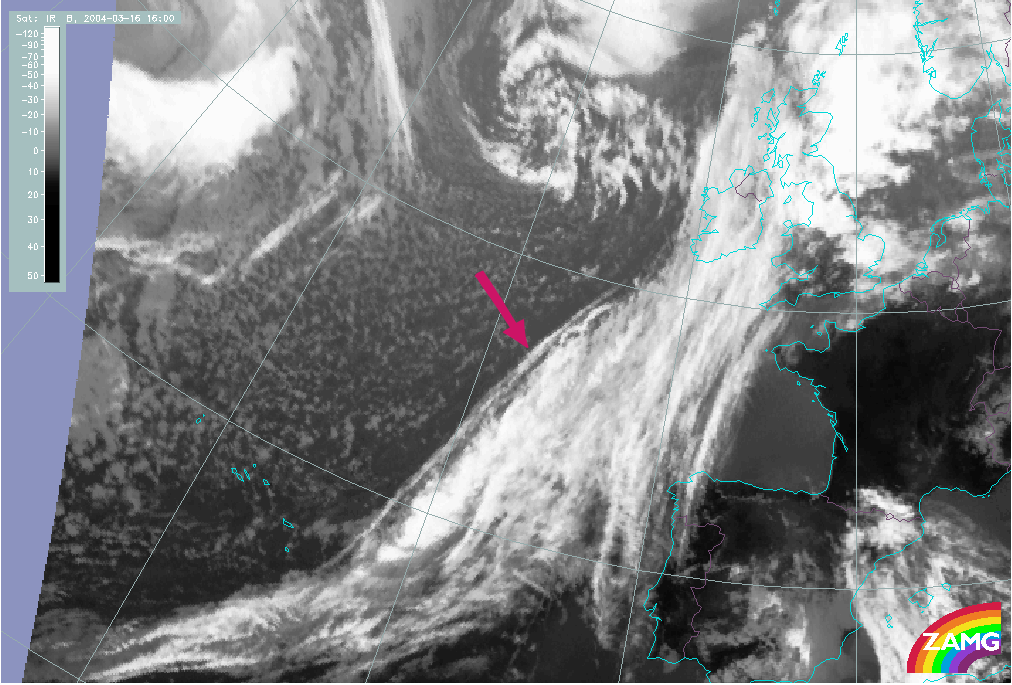 Jet Fibre extending from the top of the Warm Front Shield over Atlantic towards the SE coast of Portugal.