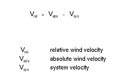 The subtraction of the system velocity means that an observer would move with the system and that all the air streams and their changes occur relative to this system.