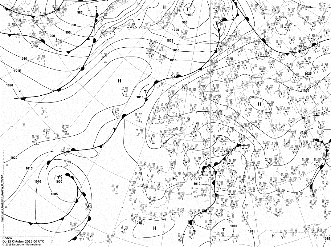Figure 6: Surface synoptic analysis, October 15th, 2015 at 6 UTC
