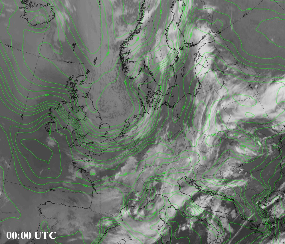 In the weather simulator EUMeTrain ePort archive data has been used. You can view different satellite images in combination with NWP data and parameters. There will be an update to the images at 06:00 UTC.