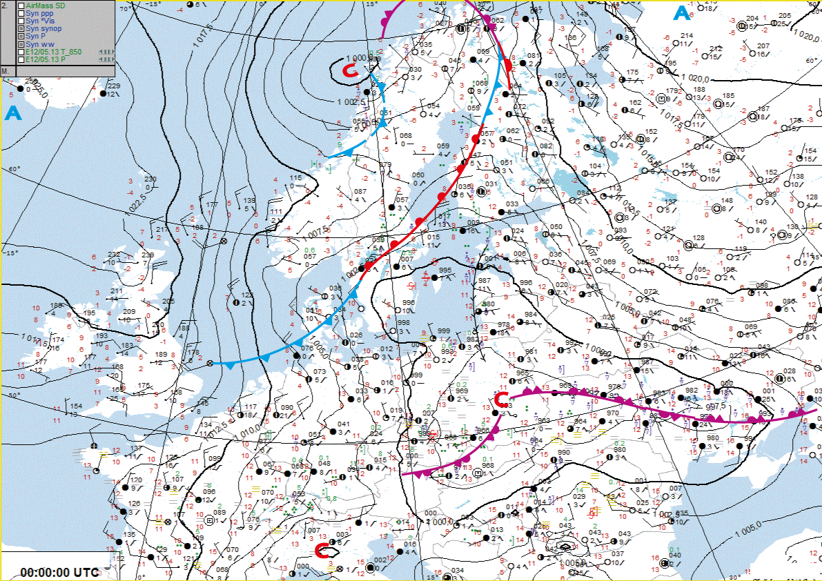 Figure 2: Surface analysis, left aviation surface analysis, right general surface analysis