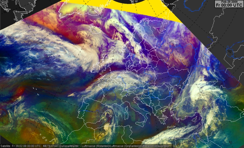 29 February 2008, 00.00 UTC - Meteosat Airmass RGB
