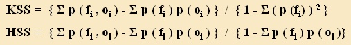 The KSS and HSS skill scores can be generalized for multi-category cases in the form: