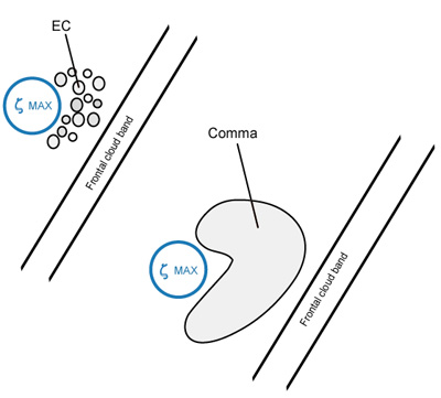 This theory is supported by those cases where a Comma develops from an EC area far behind the frontal cloud band.
