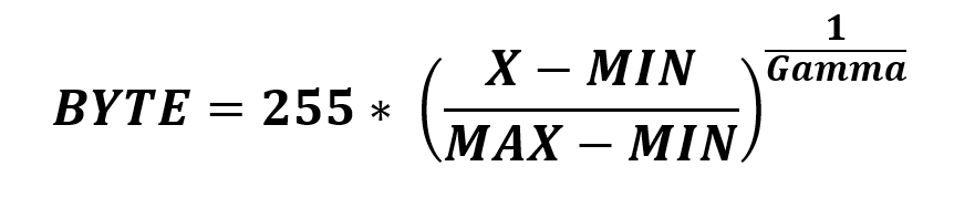 - BYTE is the output value: the intensity of the enhanced image (where the full range of display values is 0–255).