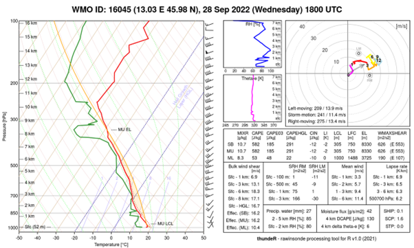 Figure 10: Radiosonde measurement (thermodiagram) from Rivolto (Italy), 28 September 2022 at 18:00 UTC (20:00 local time).